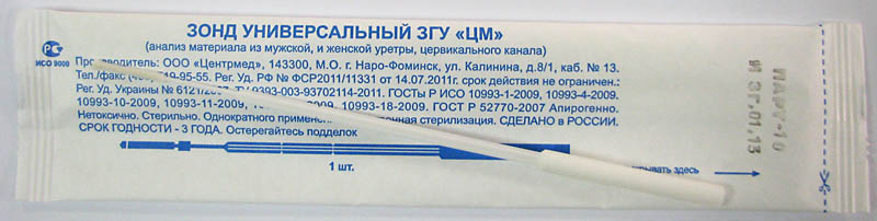 Рекомендуемый инструмент для взятия материала — зонд универсальный ЗГУ-ЦМ.